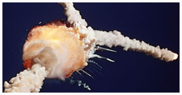 One minute into the flight, the shuttle – at 35-thousand feet – hit a speed of Mach-1.5. Then, seconds later, something unusual was noticed. The contrail thickened; it seemed to balloon out a bit. Then one, just one, solid rocket booster came corkscrewing out of the cloud. Seconds later, a second solid rocket booster can be seen. At 73 seconds into the flight the Space Shuttle Challenger appears to explode. There is no chance for the astronauts to escape during the initial two minutes of flight.