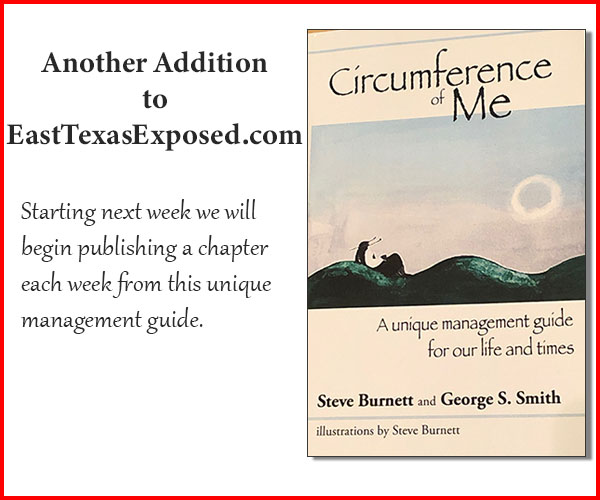 We want your visit to EastTexasExposed.com to be a unique experience. Starting next week, we will broaden that experience. Each week will publish a chapter from the book The Circumference of Me.